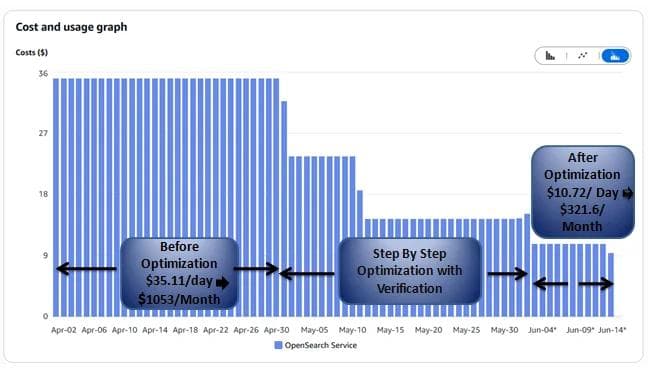 By implementing these optimization strategies, we were able to significantly reduce BotGauge’s OpenSearch cluster monthly costs by 69.45% ($741.7 monthly savings) without any impact on log retention compliance, cluster stability, or performance.